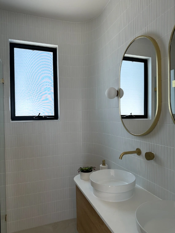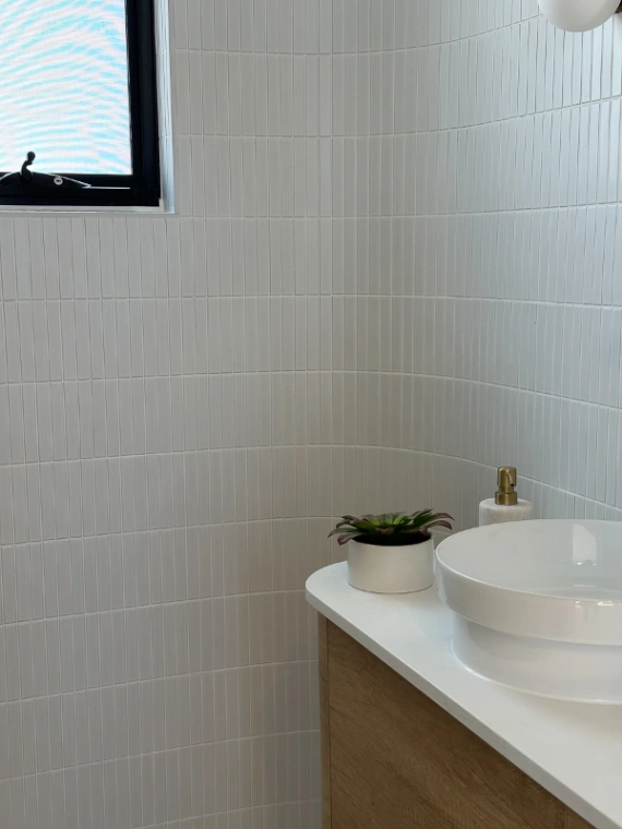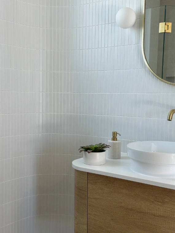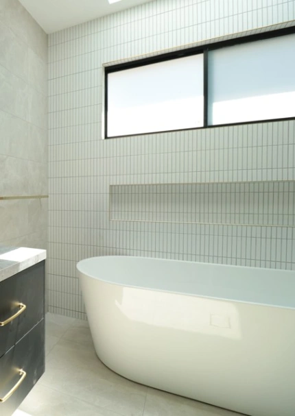 A: Subway tiles remain a timeless favourite for their clean lines and versatility. Marble-look tiles offer an elegant, luxurious feel, while stone-look and textured finishes are great for creating a spa-inspired atmosphere. Patterned or geometric tiles are commonly used as feature walls to add personality and visual interest.
